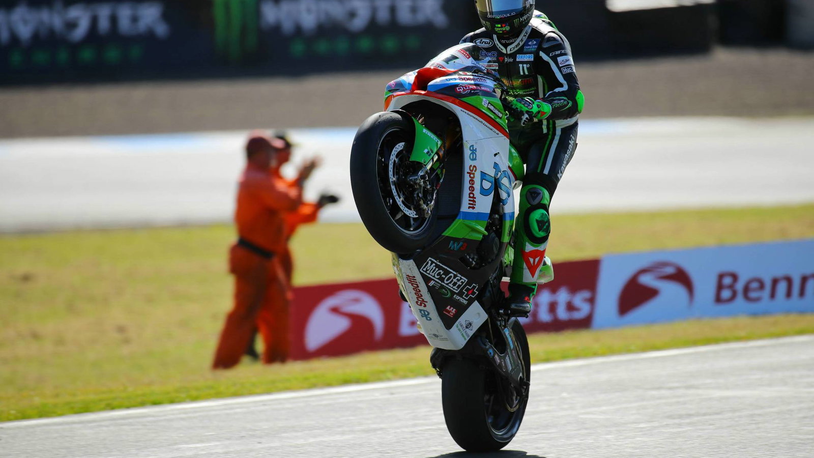 With his JG Speedfit Kawasaki squad finding a repair for race two, Haslam made amends by producing a carbon-copy of Dixon’s win by taking the lead with five laps remaining after his rival suffered a massive moment which almost threw him of his bike.