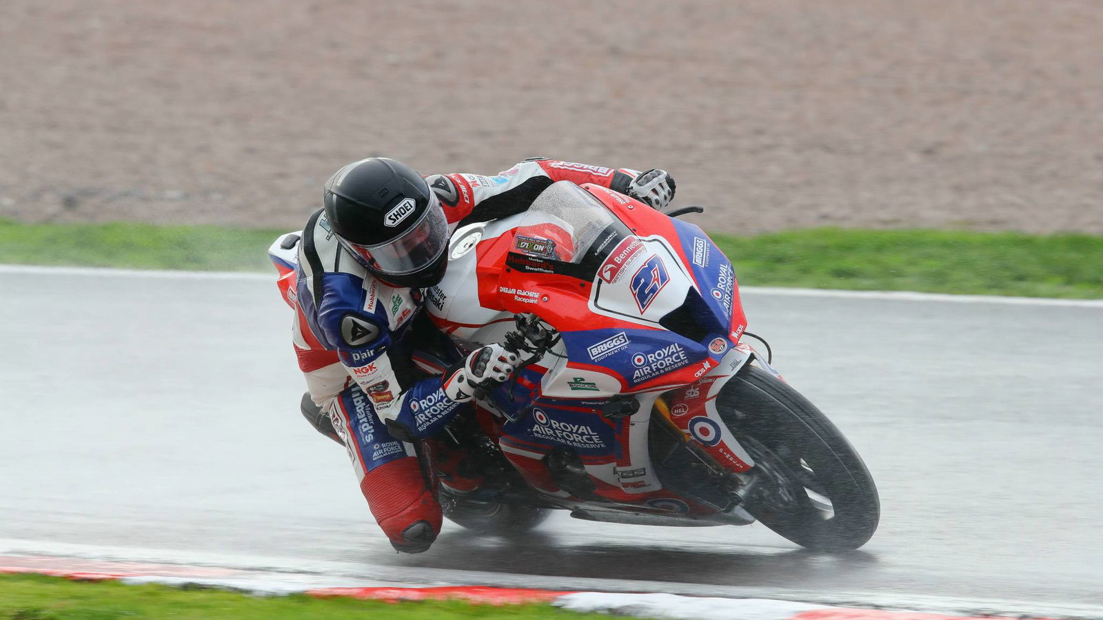 The RAF Regular & Reserve Kawasaki rider bolted clear of the chasing pack along with Moto Rapido Ducati’s Tommy Bridewell in very wet conditions at the Cheshire track.