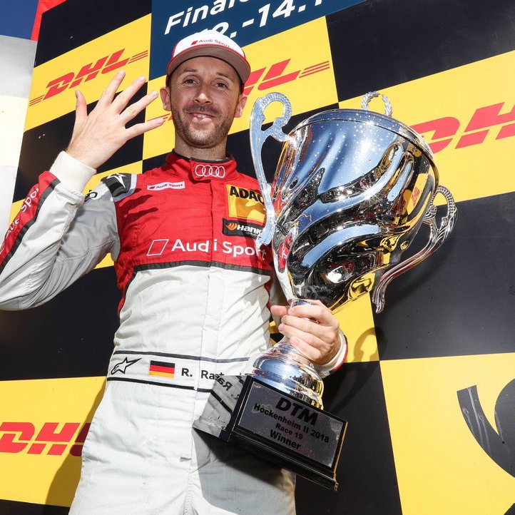 Reigning champion Rene Rast took a hard fought fifth win in a row to keep his DTM title hopes very much alive after leading an Audi 1-2 result in race one at the Hockenheimring.