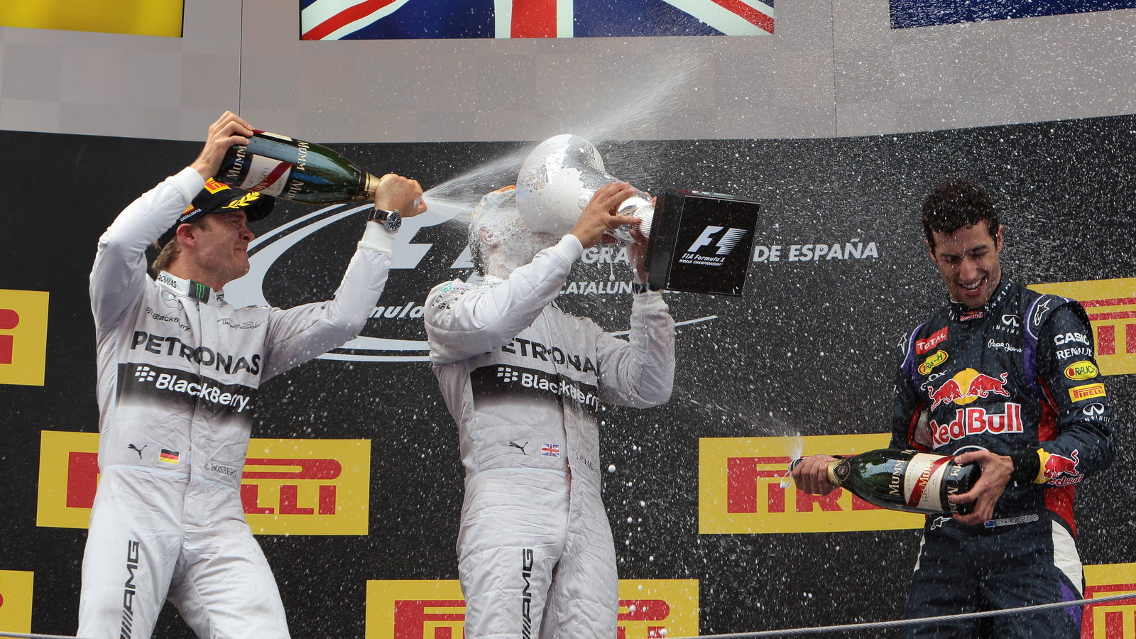 Drivers: Lewis Hamilton (Mercedes), Nico Rosberg (Mercedes), Daniel Ricciardo (Red Bull Racing)