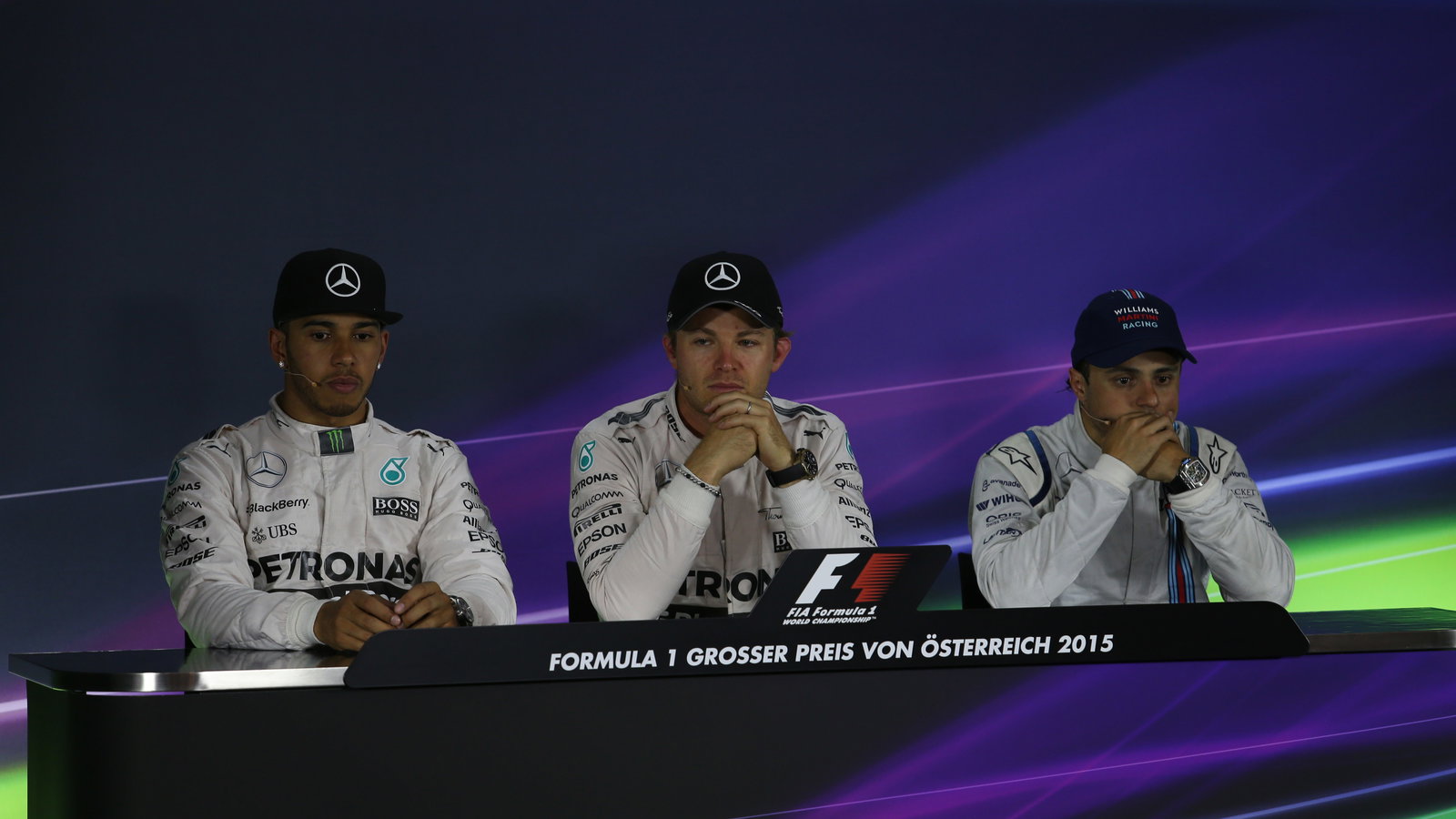 Drivers: Nico Rosberg (Mercedes), Lewis Hamilton (Mercedes) and Felipe Massa (Williams).