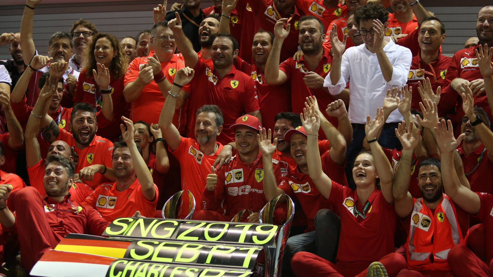 - Sebastian Vettel scored his first victory of the 2019 Formula 1 season on Sunday in Singapore after undercutting Ferrari teammate Charles Leclerc, leading Ferrari home for a one-two finish. It marked Vettel’s first win in 392 days – the last coming at the 2018 Belgian Grand Prix – and Ferrari’s first one-two since Hungary 2017. It was also the first one-two finish by a team in Singapore.