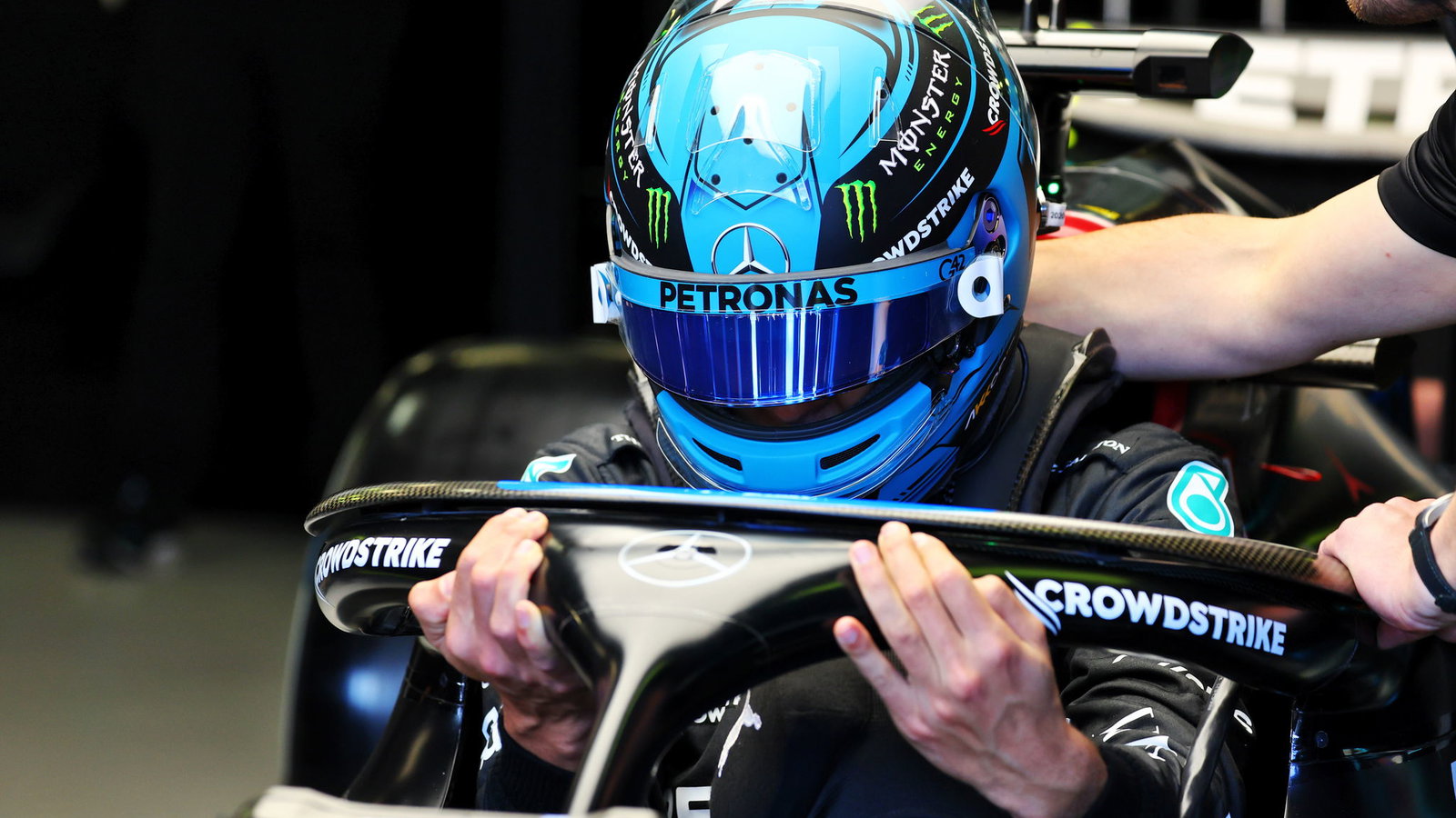 Russell saw his FP1 running compromised by an issue with a development item on his Mercedes that forced the team to carry out a complete steering rack change.