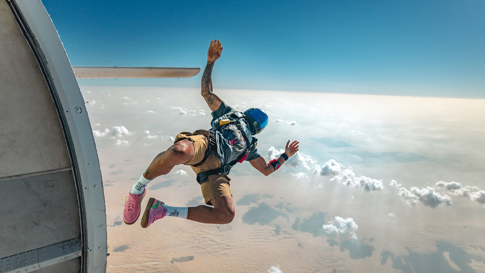 Footage showed the 38-year-old, who got his skydiving licence in 2019, launching himself out of a plane before completing several rolls while in free fall.