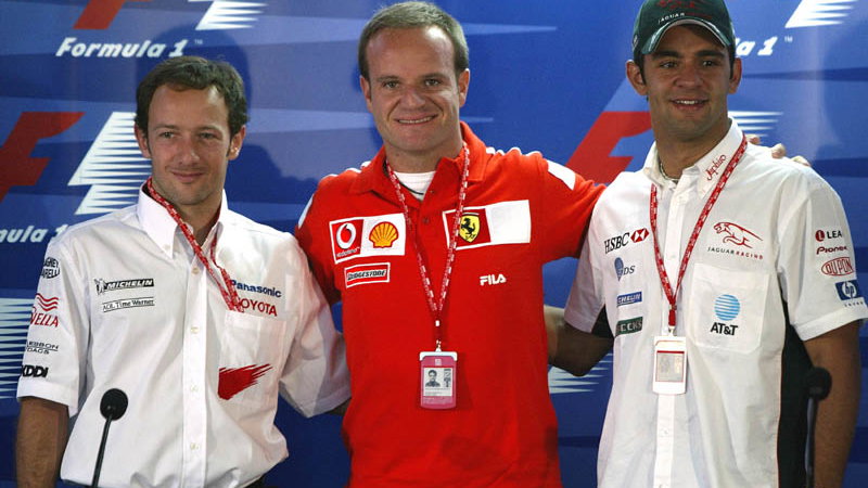 Drivers: Rubens Barrichello (Ferrari), Crisitano da Matta (Toyota), Antonio Pizzonia (Jaguar) and Kimi Raikkonen (McLaren).