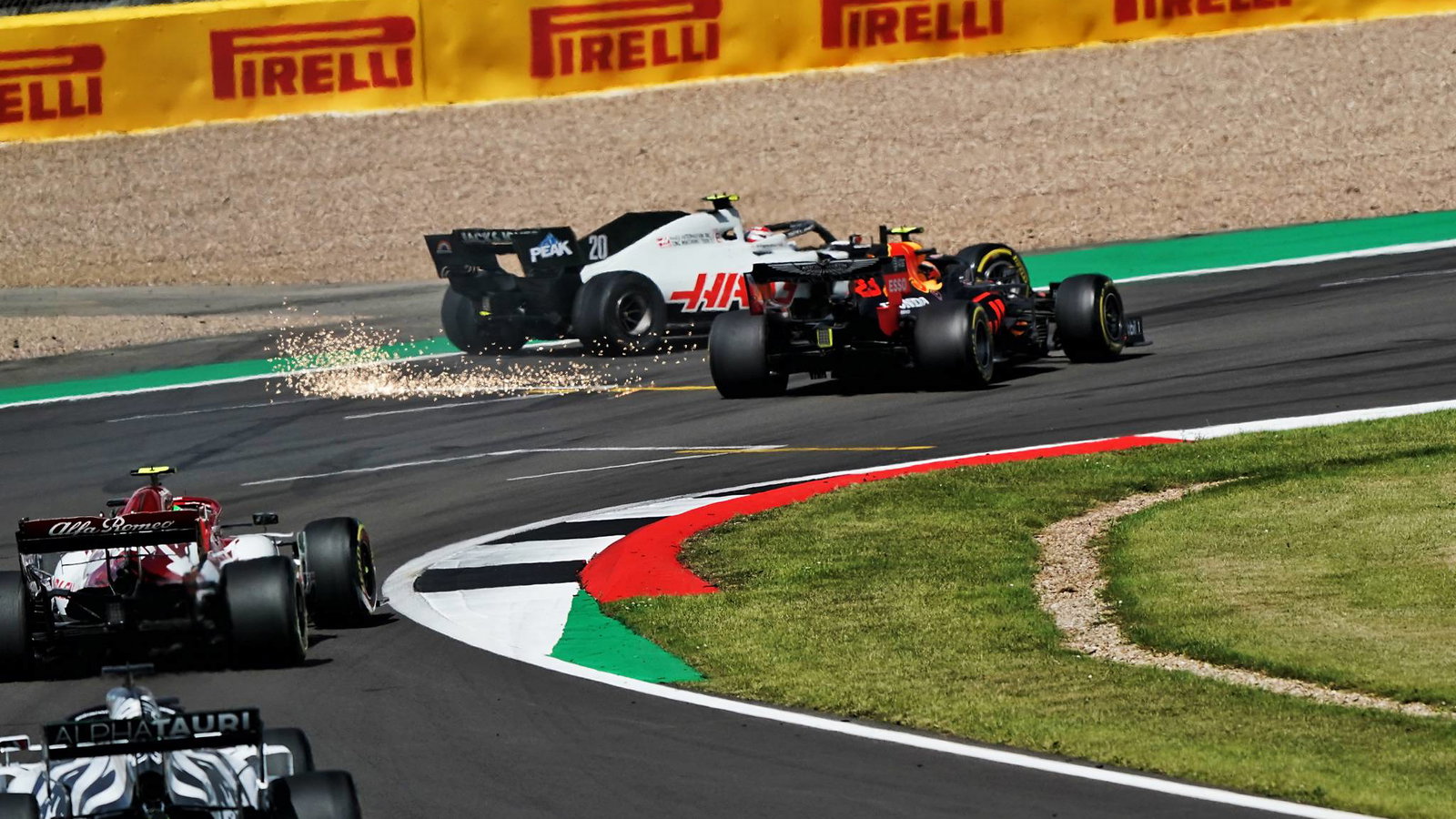 The pair came to blows at Club corner at the end of the first lap after Magnussen had run wide and lost momentum coming out of the Vale chicane. Albon looked to snatch the position with a dive up the inside but inadvertently punted the Dane off into the gravel.