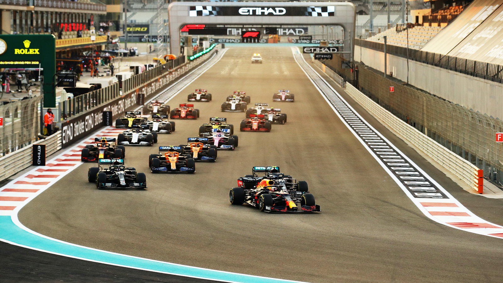 Ini berarti bahwa begitu Verstappen keluar dari garis dan pergi menuju matahari terbenam, Bottas & Hamilton melaju di belakang orang Belanda itu, tidak perlu mendekatinya sampai periode Safety Car, tetapi Verstappen akan melarikan diri lagi dan finis pertama.