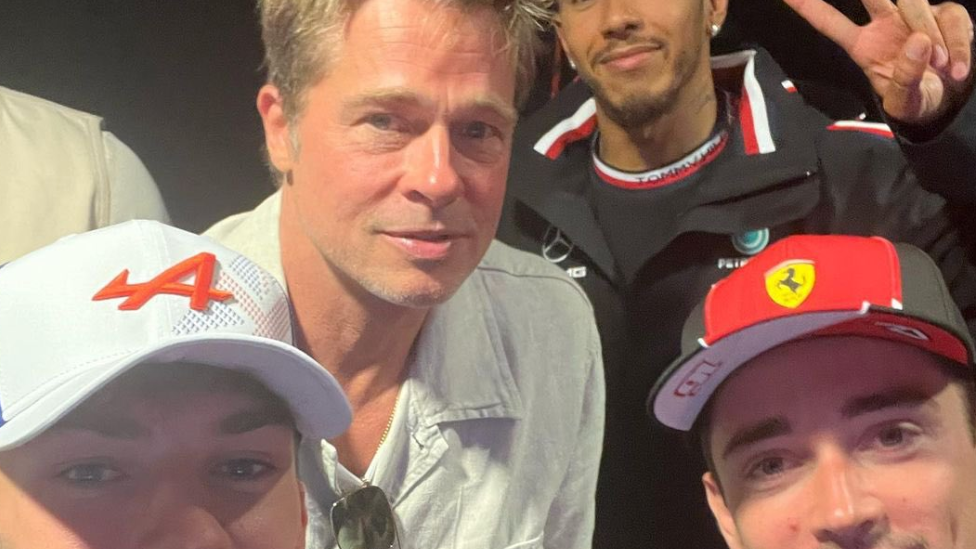 Itu adalah pemandangan langka di ruang briefing, dengan Lewis Hamilton, Pierre Gasly dan Charles Leclerc berfoto bersama dengan Pitt, yang diposting oleh Gasly.