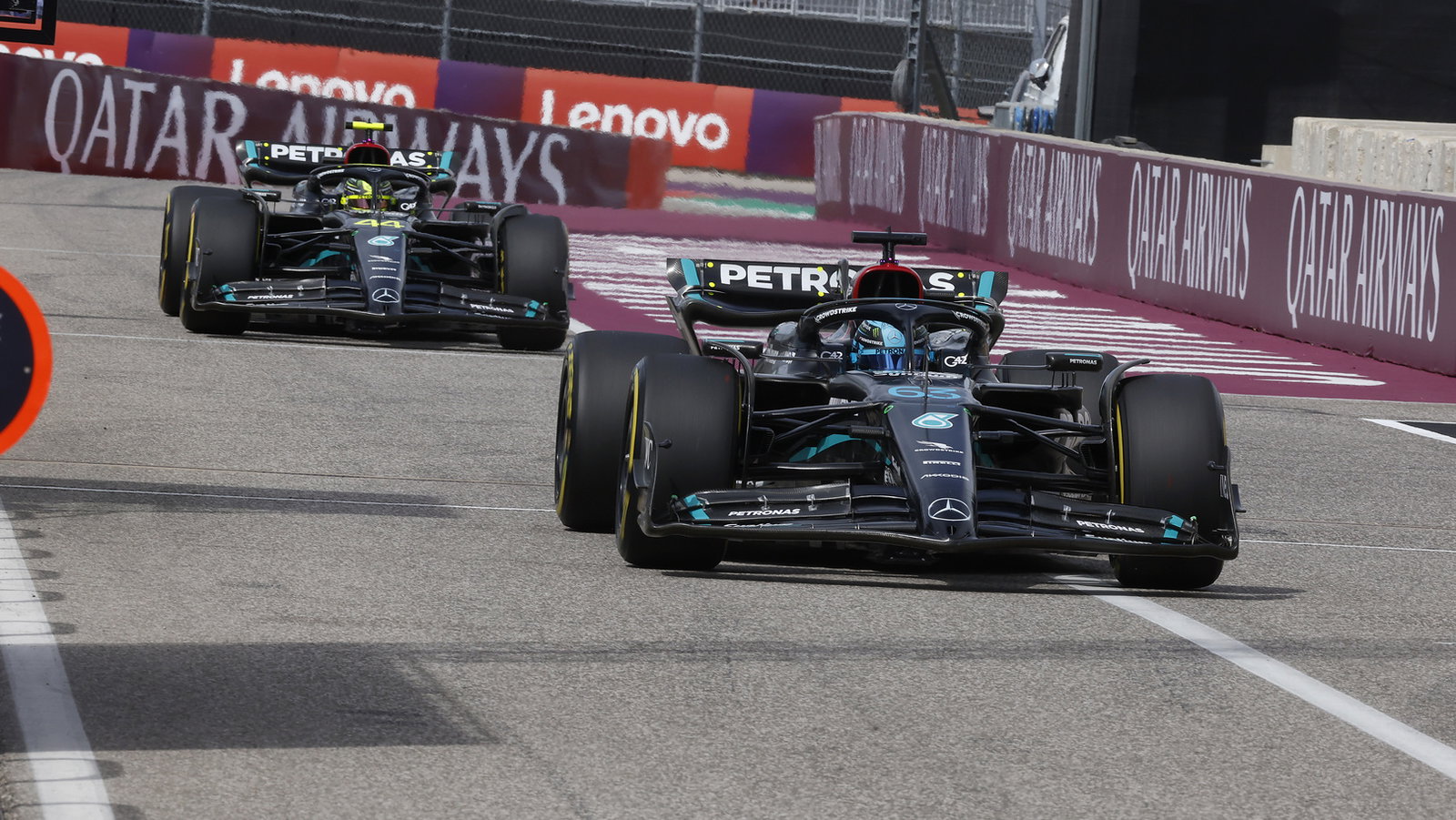 Russell finis ketujuh di Austin tetapi dipromosikan ke posisi kelima setelah Hamilton dan Leclerc didiskualifikasi.