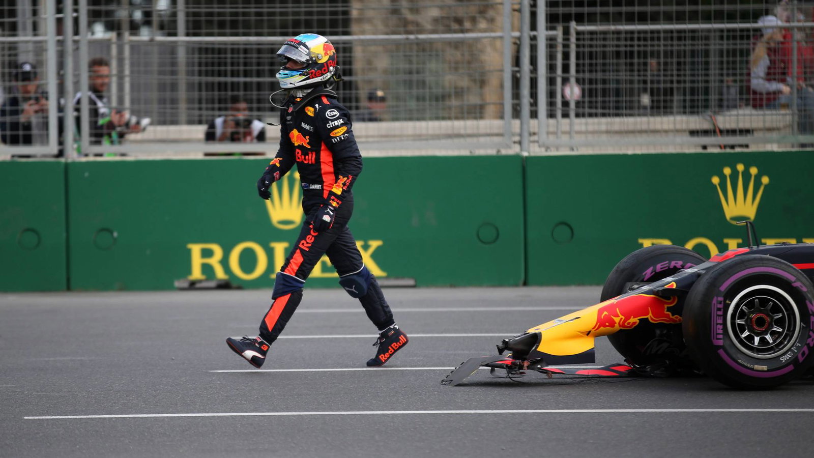 Pasangan ini datang bersama-sama di bawah pengereman dalam perjalanan ke Tikungan 1 saat mereka bertengkar memperebutkan tempat keempat pada tahap penutupan balapan di Baku, saat Ricciardo menabrak bagian belakang RB14 Verstappen - membawa kedua pembalap tersingkir.