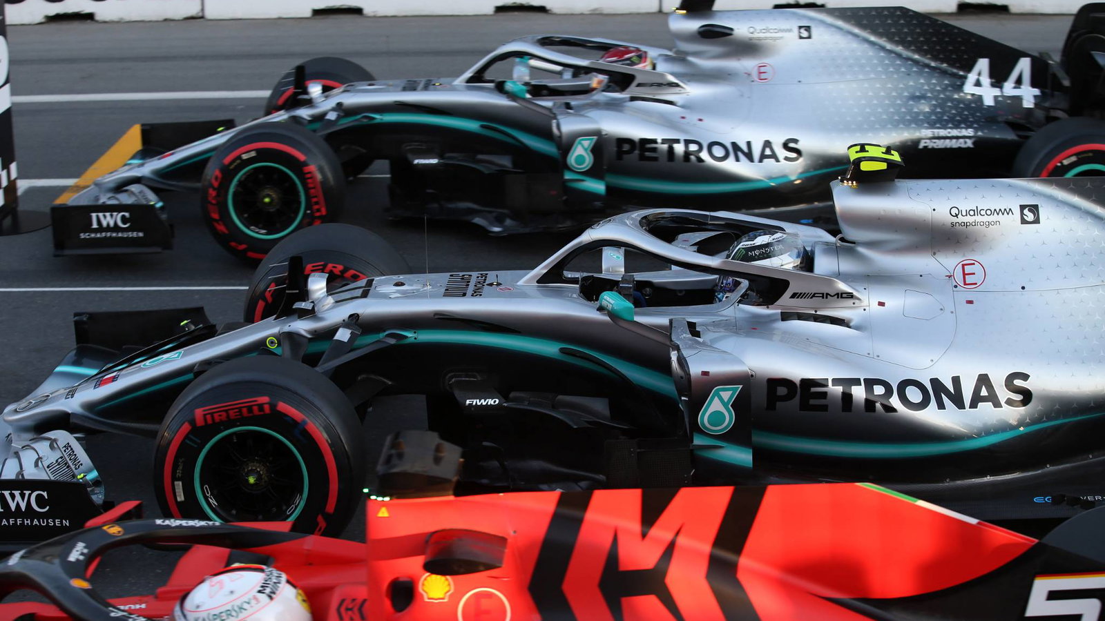 Duo ini unggul tiga persepuluh dari keunggulan Ferrari dari Sebastian Vettel, yang memiliki dua pemikiran tentang strategi kualifikasi setelah memilih untuk berlari di depan antrian menjelang lap terbang terakhirnya, yang berarti ia mendapatkan posisi trek yang optimal. tetapi tidak bisa mendapatkan keuntungan dari derek - sesuatu yang menurut Wolff "menguntungkan".