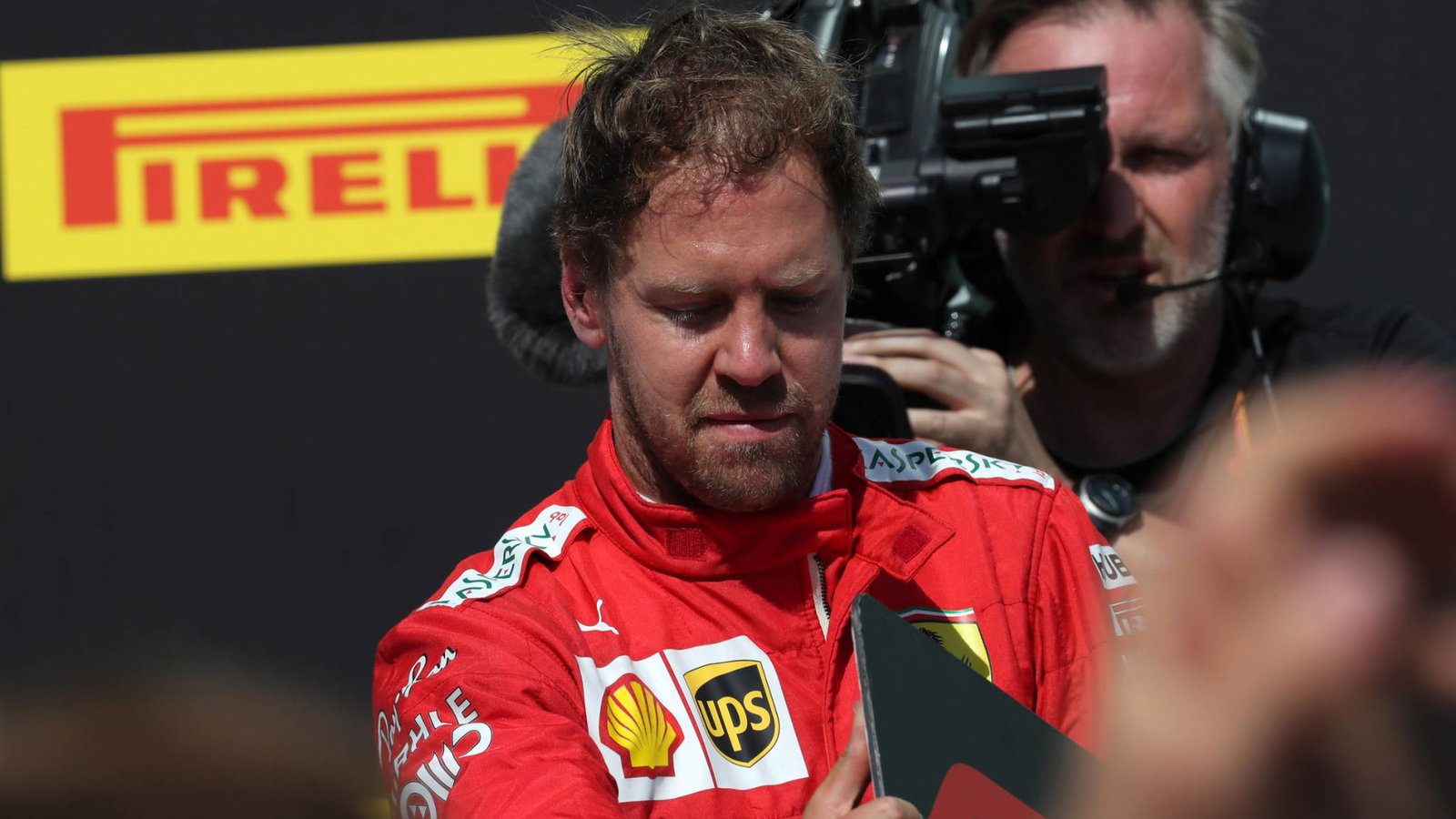 Vettel kehilangan kendali atas mobil SF90-nya yang melintasi rumput di Belok 3 sebelum memotong kembali ke trek dan menutup pintu di Hamilton. Penalti berikutnya memicu reaksi marah yang termasuk dia menukar papan penanda posisi di bawah podium di parc ferme.