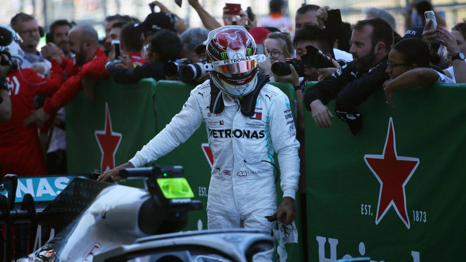 “Saya berada di belakang Sebastian [Vettel], derek dengan DRS dan tenaga maksimum dan semuanya… sungguh luar biasa betapa cepatnya mereka [Ferrari],” jelasnya.