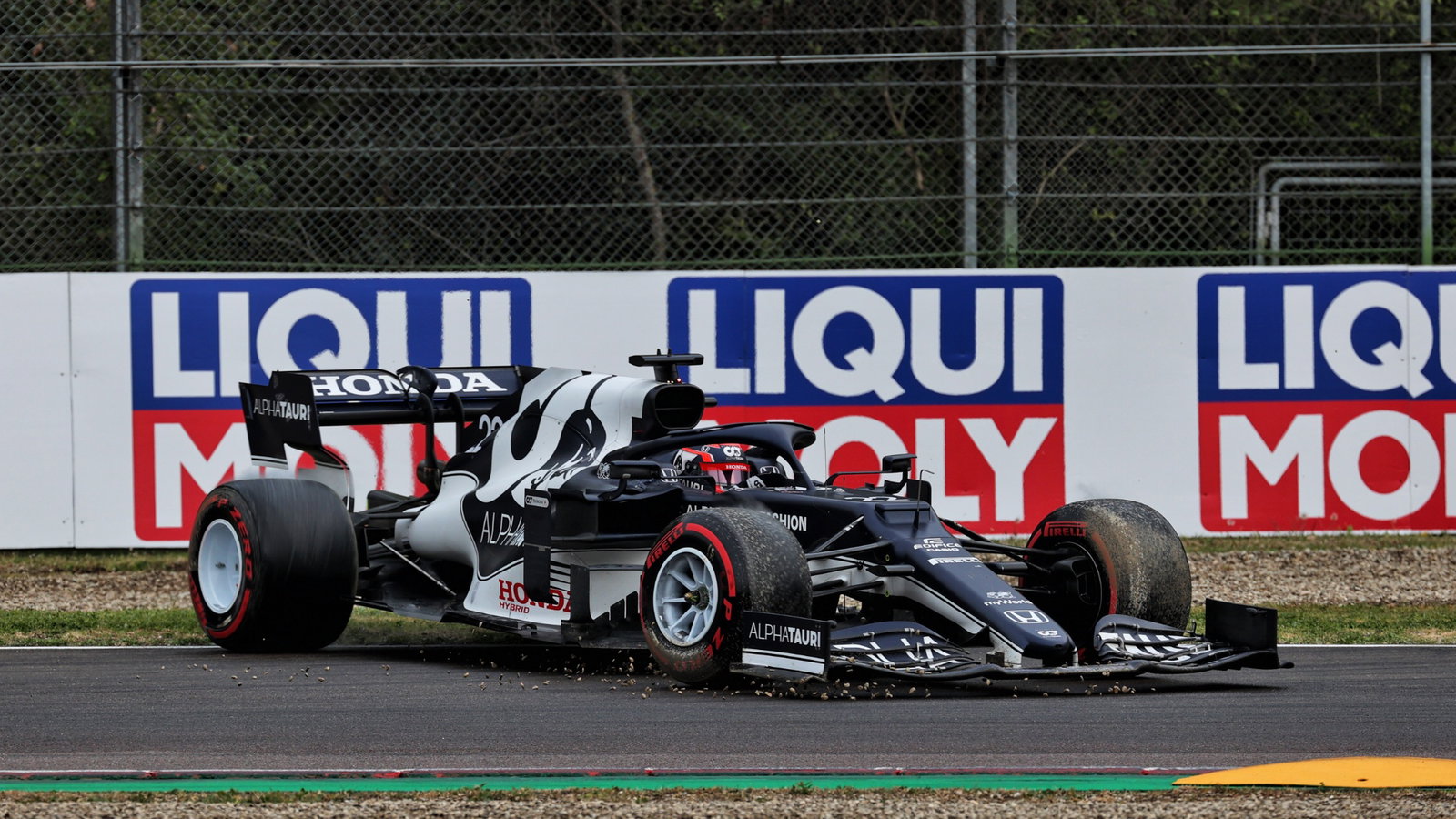 Rekan setimnya Pierre Gasly mencetak poin pertamanya musim lalu di Imola, pulih dari panggilan strategi yang salah untuk memulai dengan keadaan basah penuh untuk finis ketujuh.