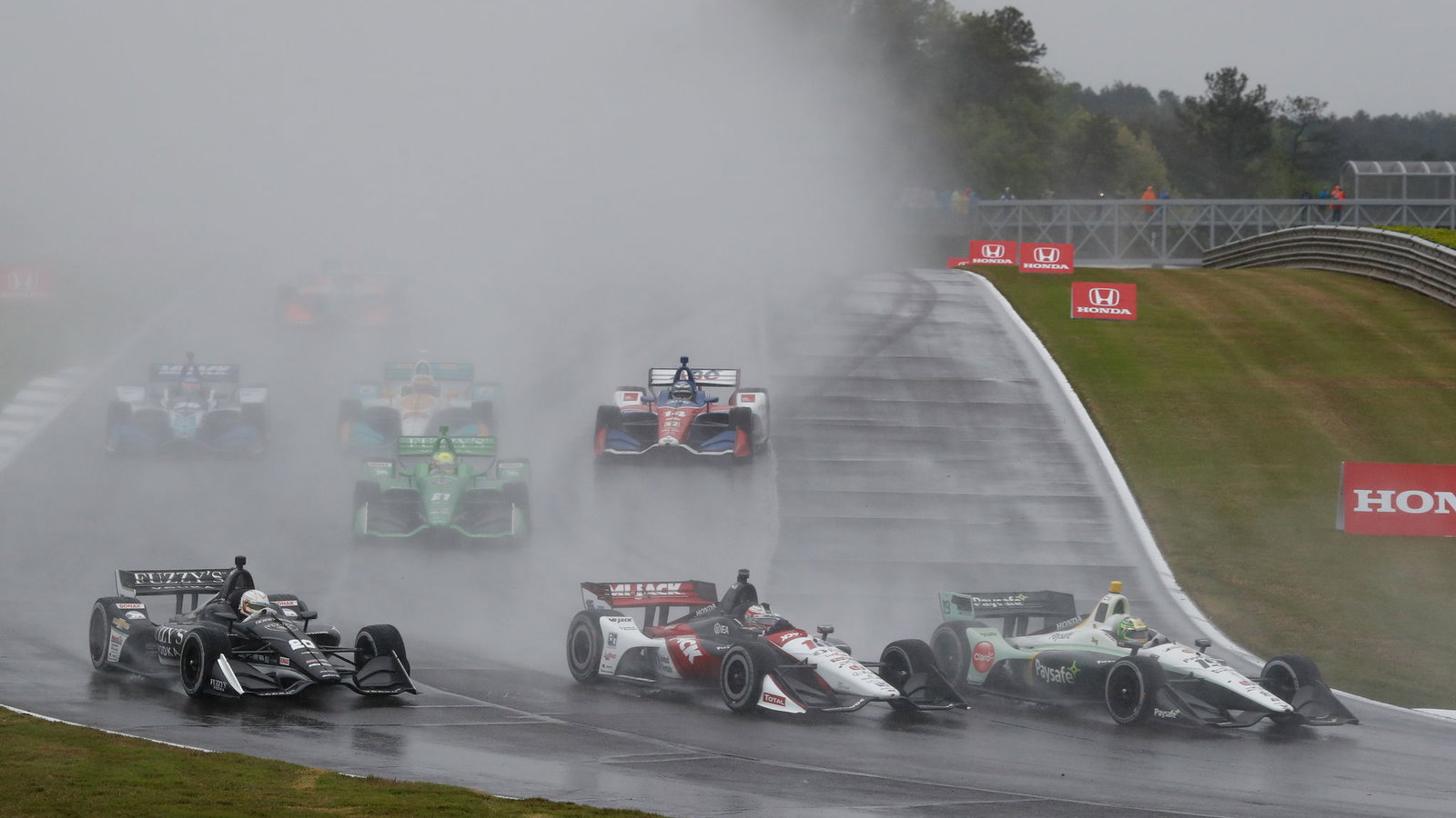 Ramalan cuaca yang buruk menyebabkan kontrol balapan membawa perlombaan yang direncanakan dimulai 30 menit untuk mencoba dan menemukan jeda dalam cuaca, dengan pole-sitter Josef Newgarden memimpin lapangan di sirkuit yang basah kuyup.