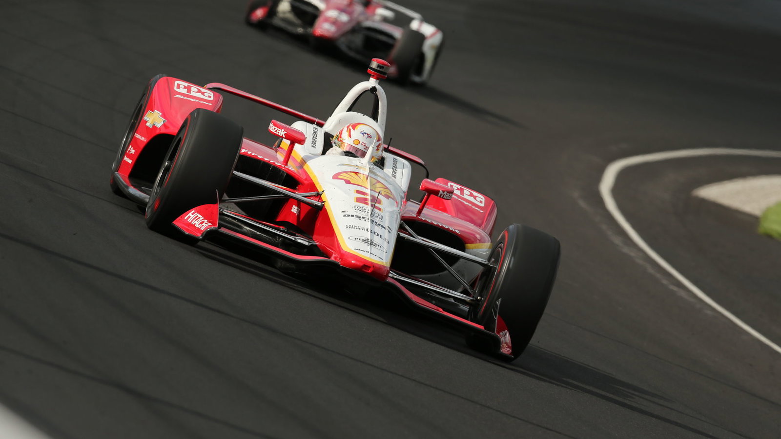 Pengemudi Team Penske meluncur di sekitar oval 2,5 mil yang ikonik dengan bantuan derek dalam 39,3260 detik (228,856 mph).