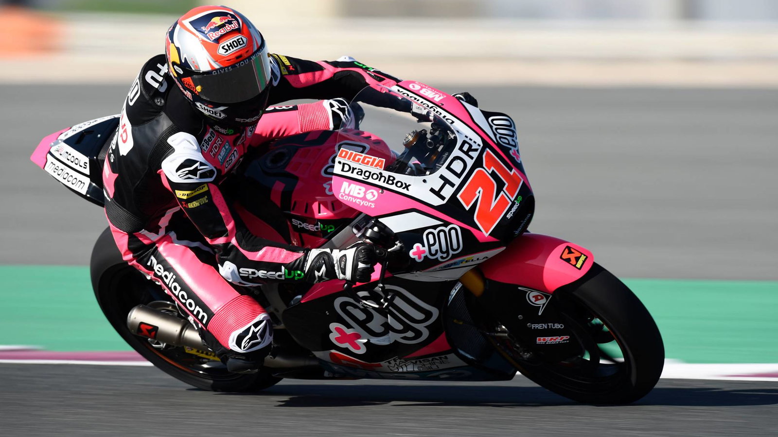 Rookie memiliki kecepatan yang cukup untuk menyembunyikan kesalahan di akhir pertandingan dan menahan pemimpin klasemen Alex Marquez, yang dia gulingkan dari posisi teratas. Pembalap EG 0,0 Marc VDS Kalex itu tidak membalas dengan lap terbaiknya yang sudah ditetapkan, dan tetap 0,137 terpaut dari 'Diggia' terbaik di trek yang tidak dia sukai.