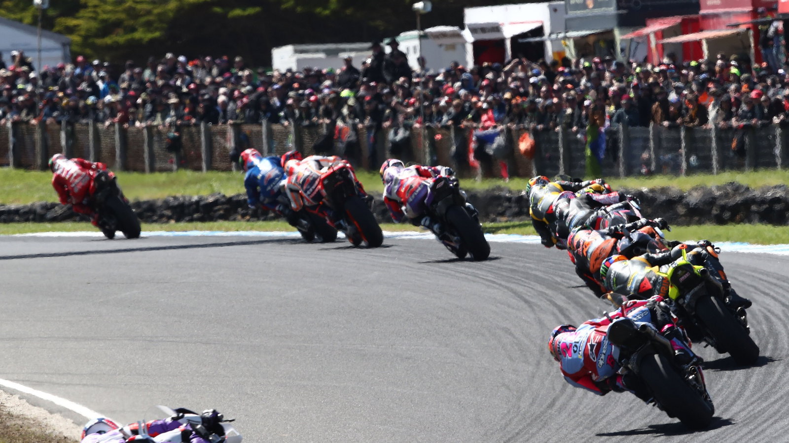 “Kami tahu start ke-15 akan rumit tapi lap pertama benar-benar aneh karena [berkendara] dengan pembalap lain, motor terasa sangat gugup dan kemudian di tikungan terakhir airbag saya meledak karena [guncangan besar].