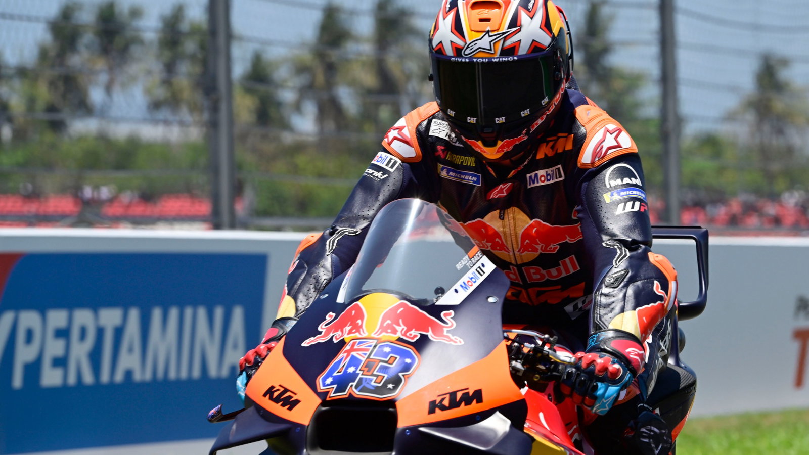 Lintasan Mandalika terkenal licin saat offline dan Miller, yang melintasi kotak-kotak di posisi kesembilan, kehilangan kendali saat kembali ke jalur pit.