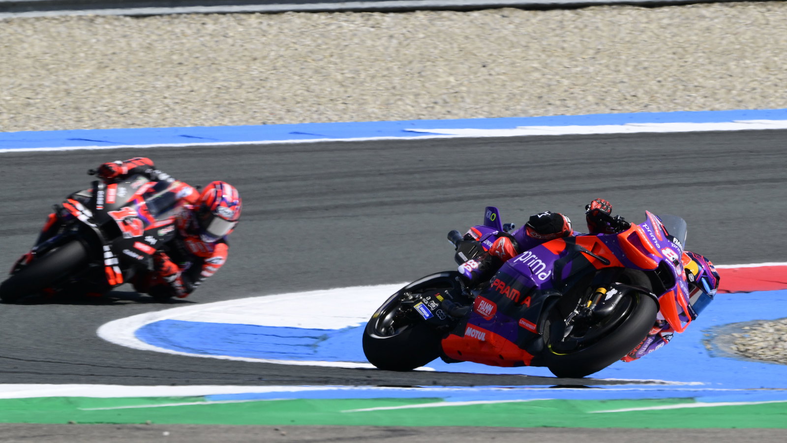 Bagnaia mengatakan kepada TNT sports : “Saya pikir Jorge adalah pembalap yang sangat kuat. Kecepatannya, titik pengeremannya luar biasa.