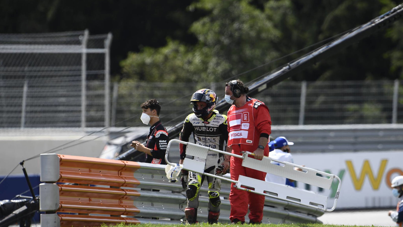 Seperti Zarco, Morbidelli dalam keadaan sadar tetapi awalnya membutuhkan bantuan medis di sisi sirkuit sebelum dipindahkan ke Medical Center.