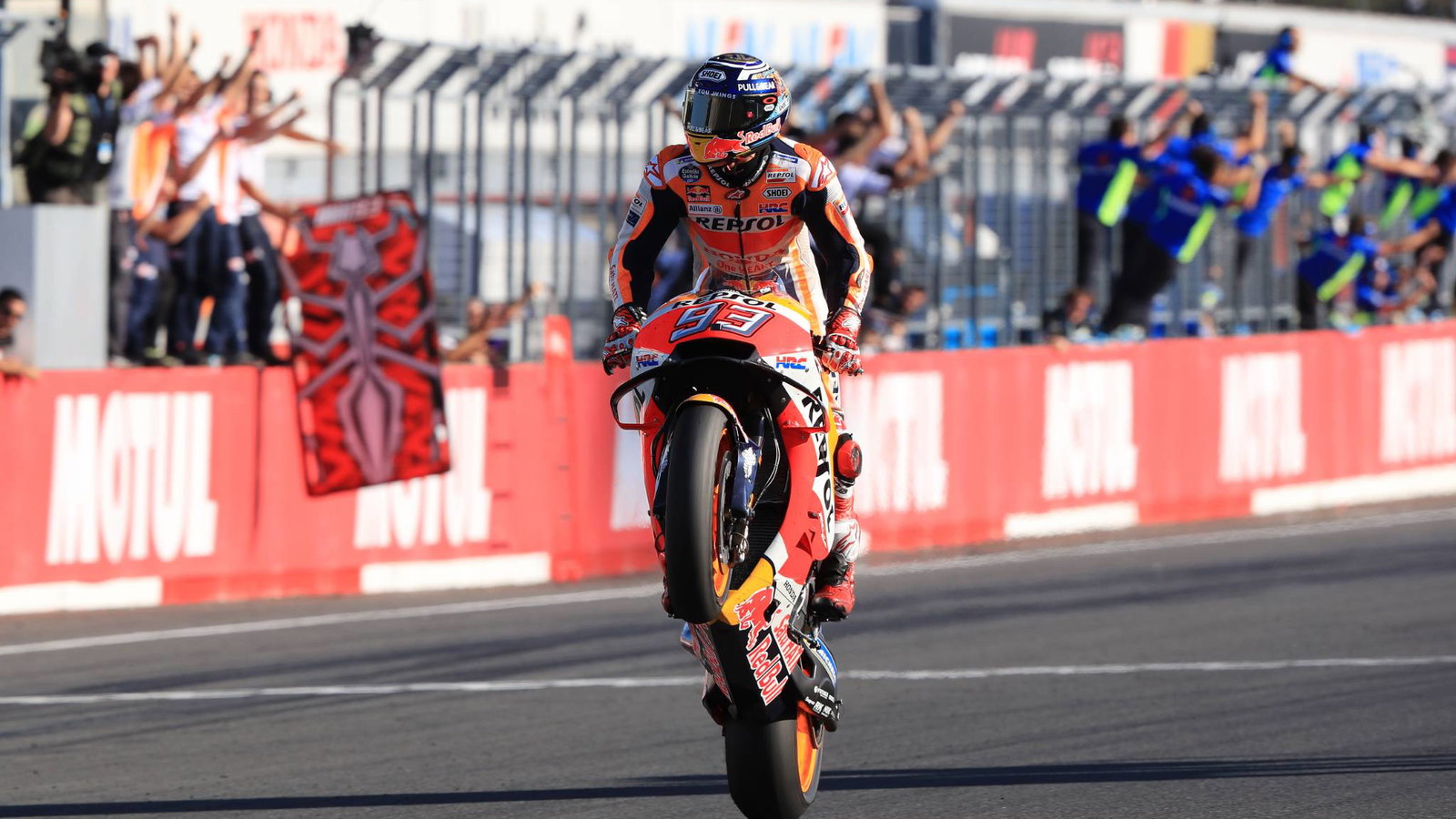 Itu adalah gelar juara kelas utama ketiga pembalap Spanyol itu di halaman belakang HRC dan Marquez adalah pemenang yang nyaman pada akhirnya setelah Andrea Dovizioso dari Ducati tergelincir di lap kedua dari belakang.