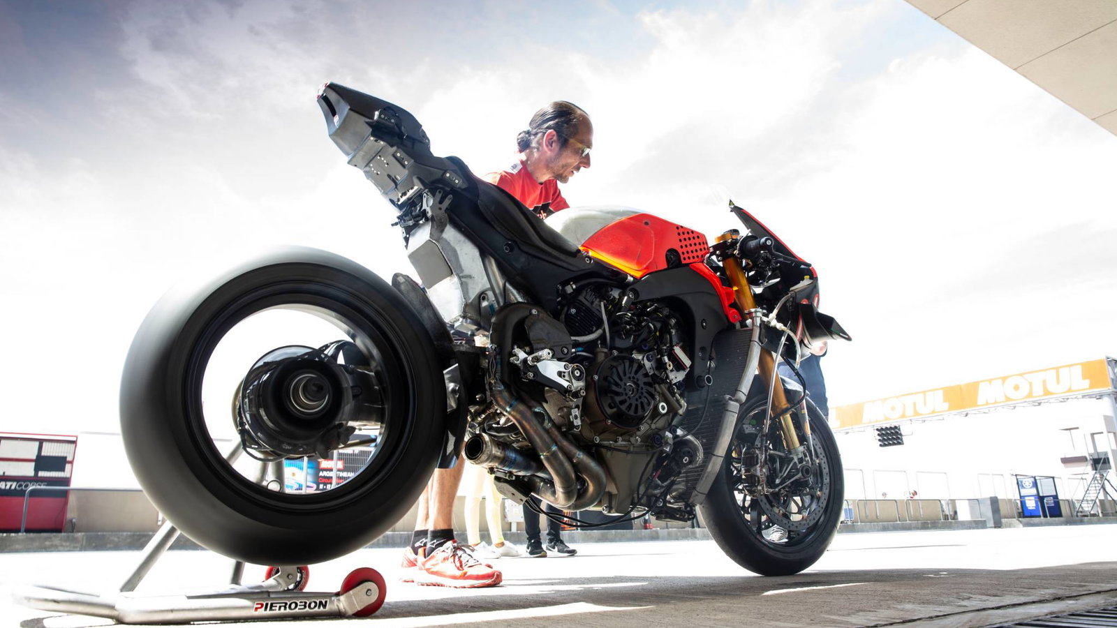 Alvaro Bautista memimpin balapan di awal balapan untuk Aruba.it Racing Ducati di Circuito San Juan Villicum karena mayoritas pengendara memilih untuk menunggu trek dibersihkan