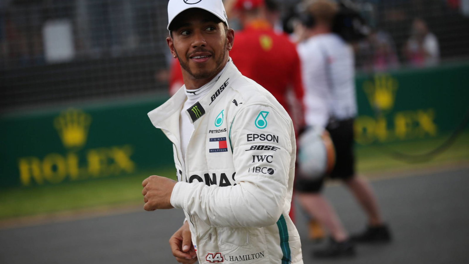 Lewis Hamilton joked he wanted to “wipe the smile” off Sebastian Vettel’s face after storming to a record-breaking pole position for the Australian Grand Prix.