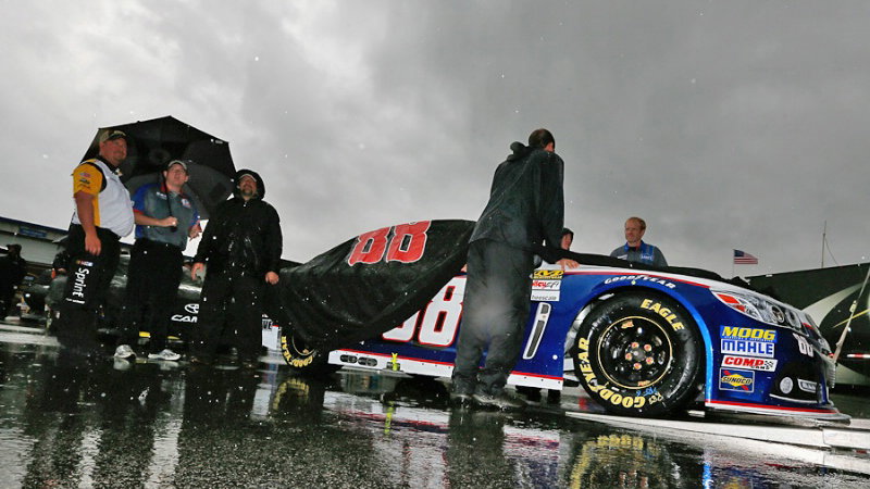 Persistent showers in Kentucky meant that there was no opportunity to get the Quaker State 400 NASCAR Sprint Cup race underway on Saturday evening as planned.