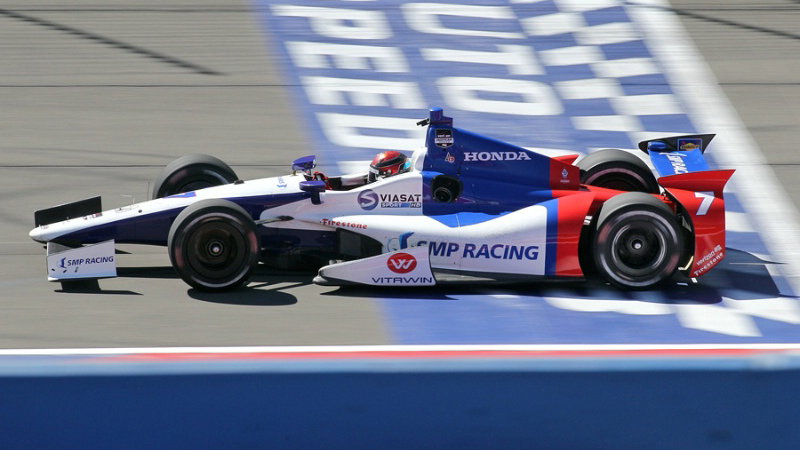 Justin Wilson has spent the night in hospital after being involved in a heavy crash just before the mid-way point of the MAVTV 500 season finale at Auto Club Speedway at Fontana.