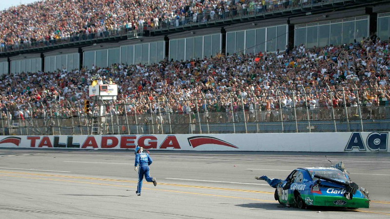 Eight fans have been injured after a final-lap wreck during the Aaron's 499 at Talladega, which saw the #99 of Carl Edwards get airbourne into the safety fencing on the final lap.