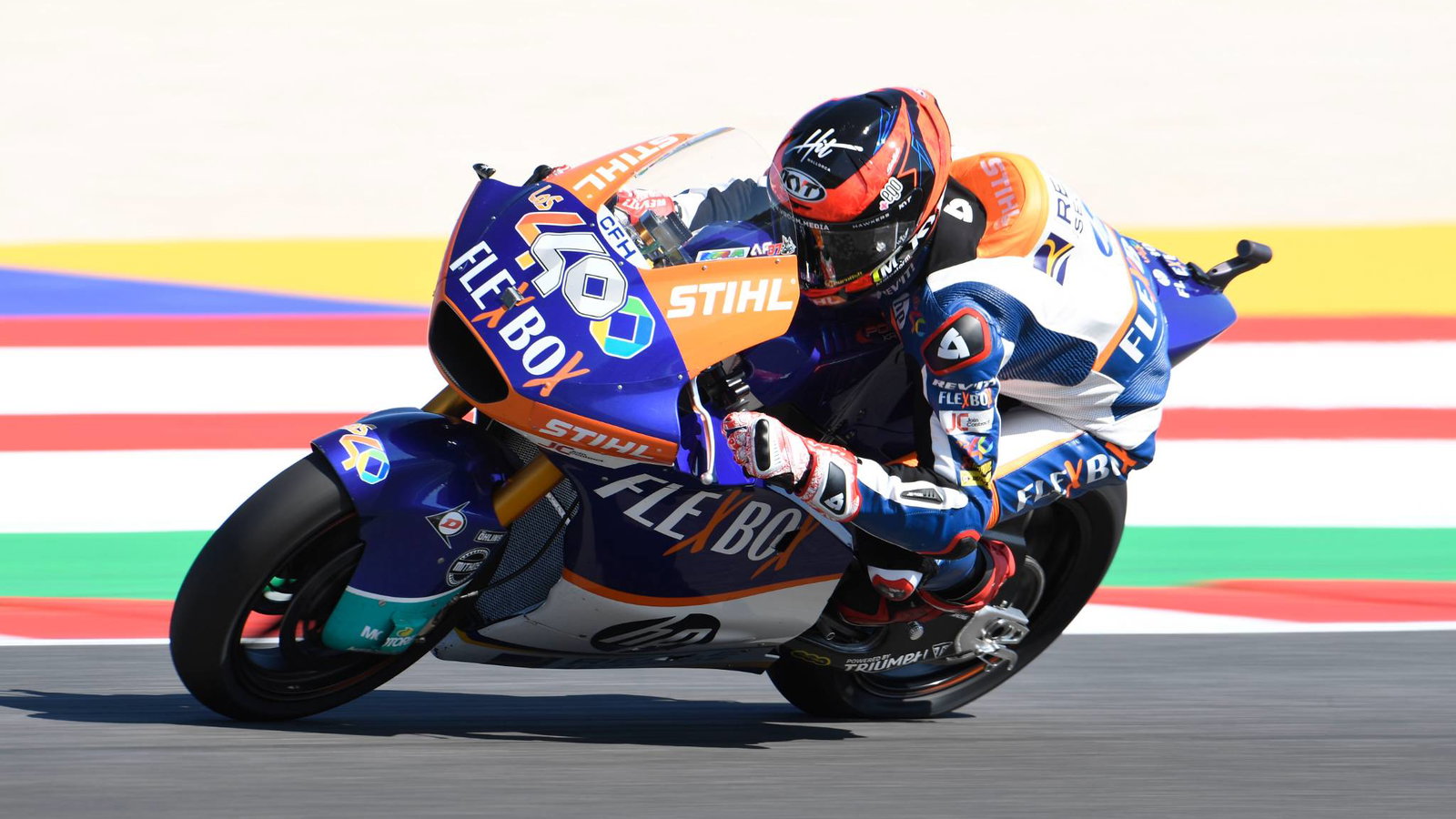 Fabio Di Giannantonio (+Ego Speed UP) had lead from his pole start but always had Fernandez (Flexbox HP 40 Kalex) in pursuit, looking for a way to pass once in contact with the Italian, causing ‘Diggia’ to recieve a track limits warning as he worked hard to keep him at bay.