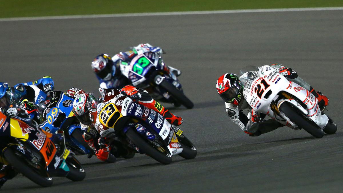 Niccolo Antonelli held back in the lead group before making his presence felt in the final corners, using his momentum to push ahead by a tiny margin to secure the first victory of the 2016 Moto3 season in Qatar.