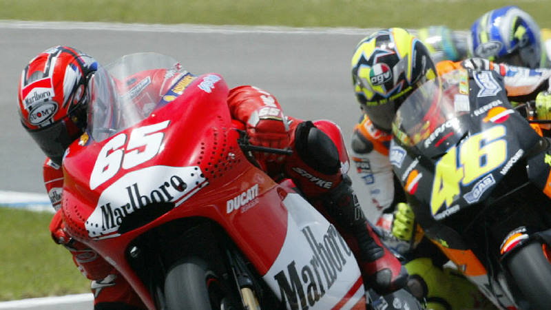 The race - and even the warm-up lap - didn't go so well for the boys from Bologna, but Capirossi thrilled the 128,000 fans with his high-speed power slides, while Bayliss would claim his first GP podium following his team-mates exit, in a shower of sparks, on lap 13.
