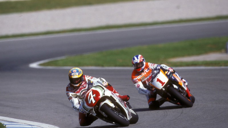 A surprise departure from Honda then saw the Australian spend an ill-fated season at Team Roberts Yamaha - during which he famously lost all five toes on his left foot - before switching to Suzuki and battling compatriot Mick Doohan for the '95 title.