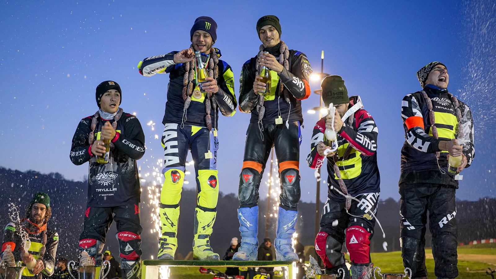 The end-of-season encounter sees past and present two-wheeled stars invited to join Rossi and the VR46 Academy riders at their famous training track.