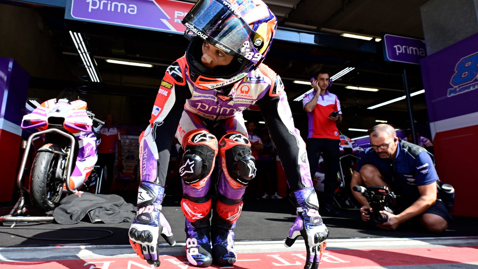 Jorge Martin crashes in warm-up while practising long lap penalty