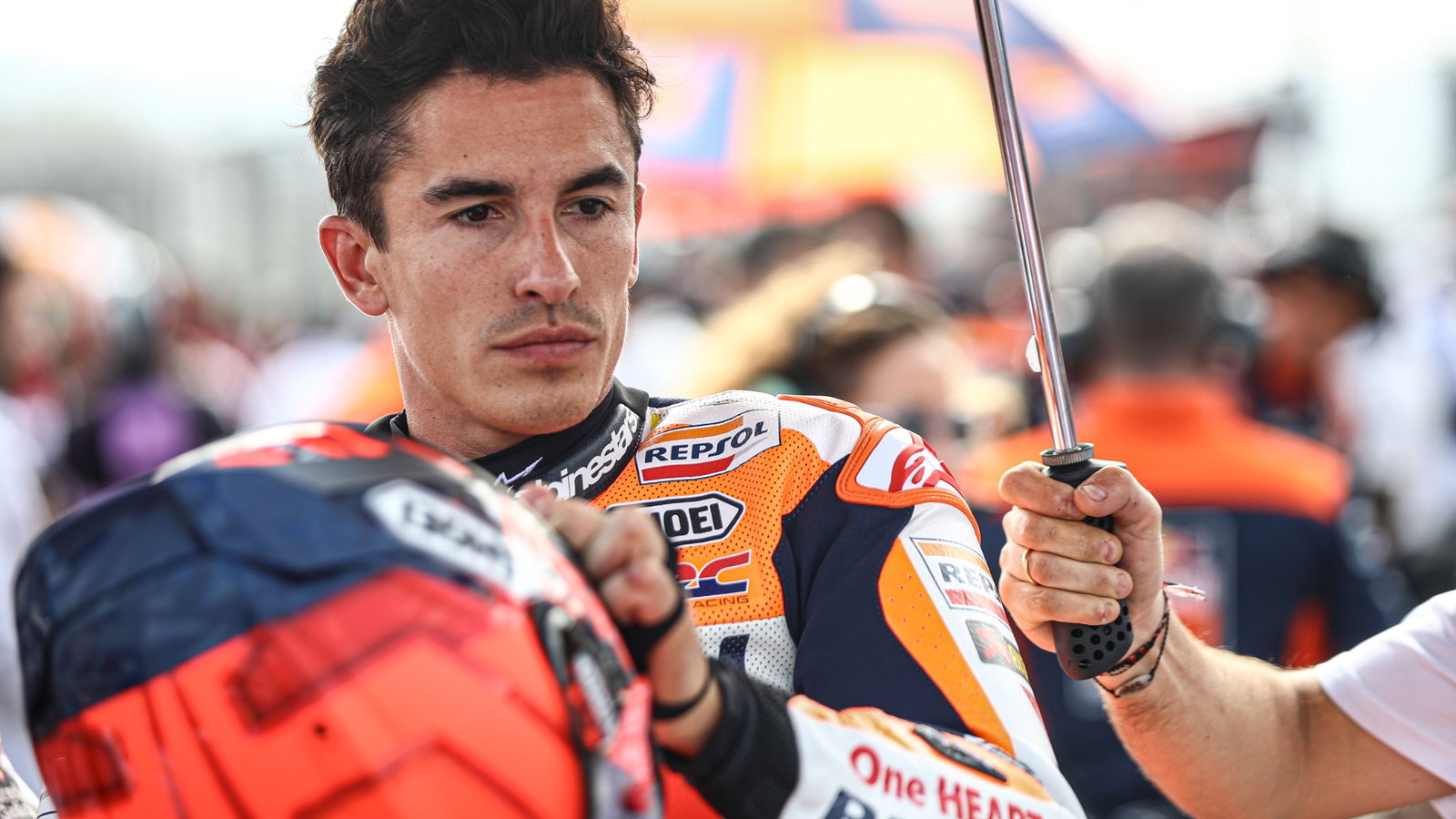 After his weekend ended in the gravel, a miserable Marquez stayed at the barriers for a while, watching the other bikes go past.