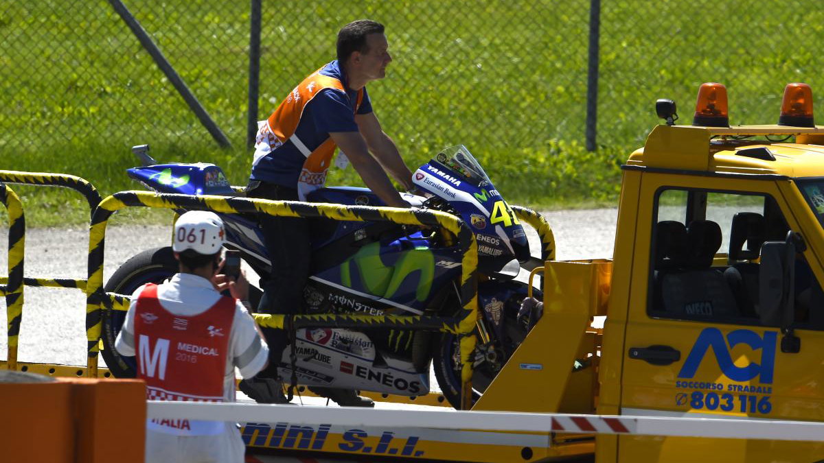 Rossi's engine failure is the second for Yamaha today, after Lorenzo in warm-up #ItalianGP #MotoGP @ValeYellow46 pic.twitter.com/r5U0iQpuCn-- Crash.net MotoGP (@crash_motogp) May 22, 2016