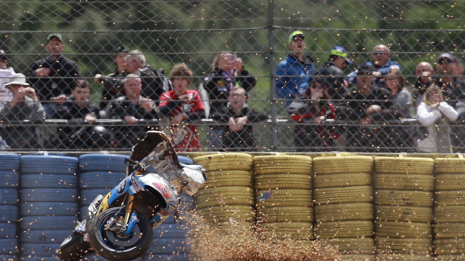 Chute monumentale et miracle pour Miller au GP de France #MotoGP pic.twitter.com/60rqFrO2qu-- Eurosport.fr (@Eurosport_FR) May 20, 2017