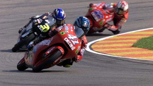 Caffiero, who had been second fastest behind Manuel Poggiali after the first days running, seemed as surprised as anyone by the pace of his Team Fontana run Aprilia on his first visit to Jerez, and later praised the team and tyre suppliers Bridgestone for their contribution to his impressive performance.