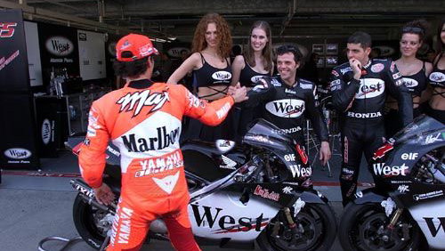 When the second race ended, the rain stopped the sun returned to Mugello where Team Owner Sito Pons celebrated with Barros and Capirossi a famous double victory for the West Honda Pons team