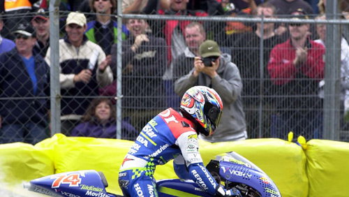 The Japanese had a great race in the early stages with Tetsuya Harada, who later dropped off the pace with bike problems. All alone, Katoh cracked the lap record, ran off the track, then broke the record again to finish ten seconds ahead of Roberto Rolfo.