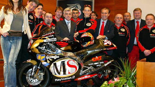 The MS Aprilia 250cc team officially launched their title defence at a ceremony in San Marino, home of their new for 2003 rider Manual Poggiali.