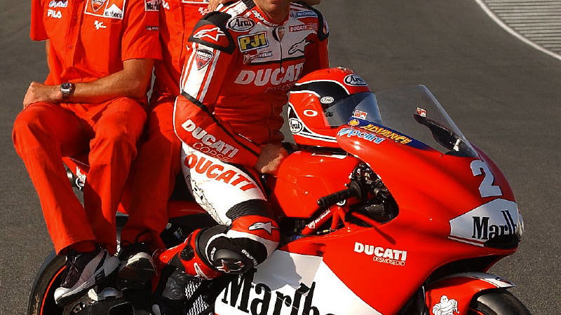 At Jerez, Ducati brought a 999 Superbike - dressed in Marlboro colours - for experienced two-seater pilot Randy Mamola to take DJ Goldie and TV presenter Meg Matthews around the Spanish GP circuit - but the Bologna based company have now completed a full blooded version in time for their home GP.