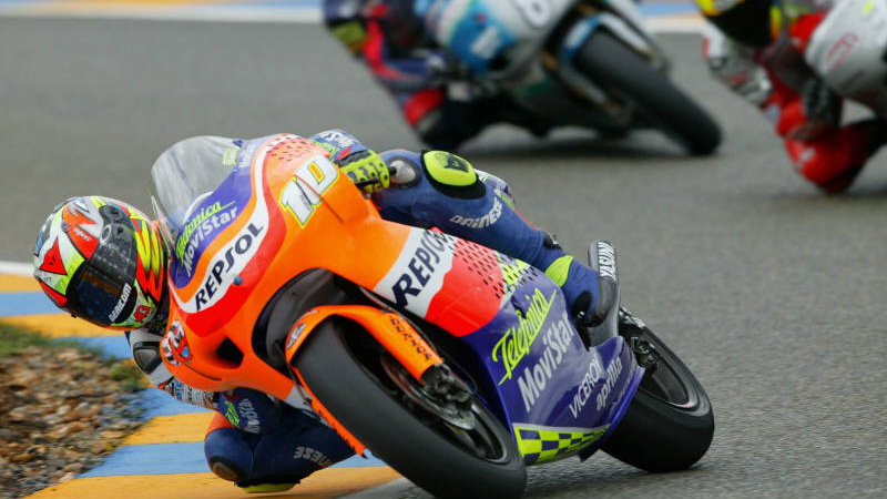 "I got a good start and went with Poggiali and de Puniet, but they were setting a really fast pace," Nieto revealed, "Manuel's bike was very fast and, in just a few laps, he began to open up a gap. I tried to cut it back but, with the heat, the tyre started to slip from underneath me and I decided not to take any unnecessary risks and to make sure of the podium. I benefited from de Puniet's crash because, if he had not gone down, I would have been third.
