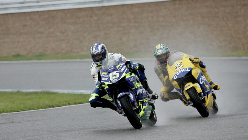 Meanwhile, having shadowed Gibernau right from lap one, Biaggi outbraked the Catalan for the lead at the halfway point - just as even more rain began to fall. Whether Max simply felt the time was right to pass or was worried that the race would be red flagged remains uncertain, but he would keep the lead for just one lap before running wide and losing the position.