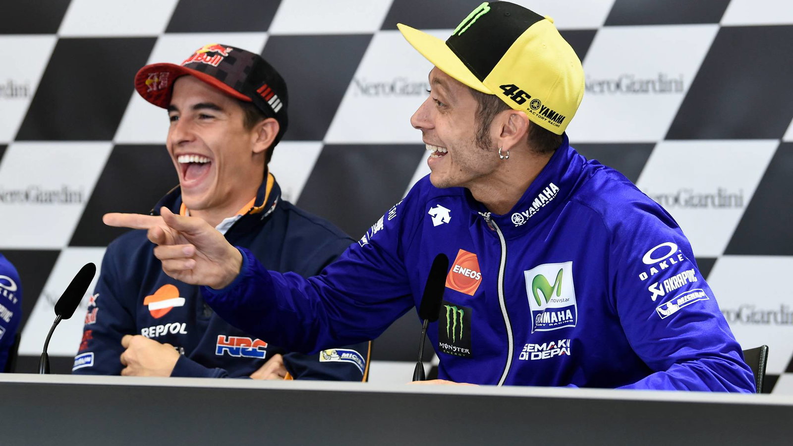At that point Marquez tapped Rossi on the arm and pointed to Gibernau, now working with Dani Pedrosa and present in the audience.