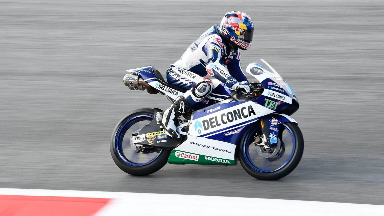 Jorge Martin crosses white line at end of the #Austrian #Moto3 race. No penalty as no kerbing, which is placed where time can be gained. pic.twitter.com/gE0JxJ2UzP