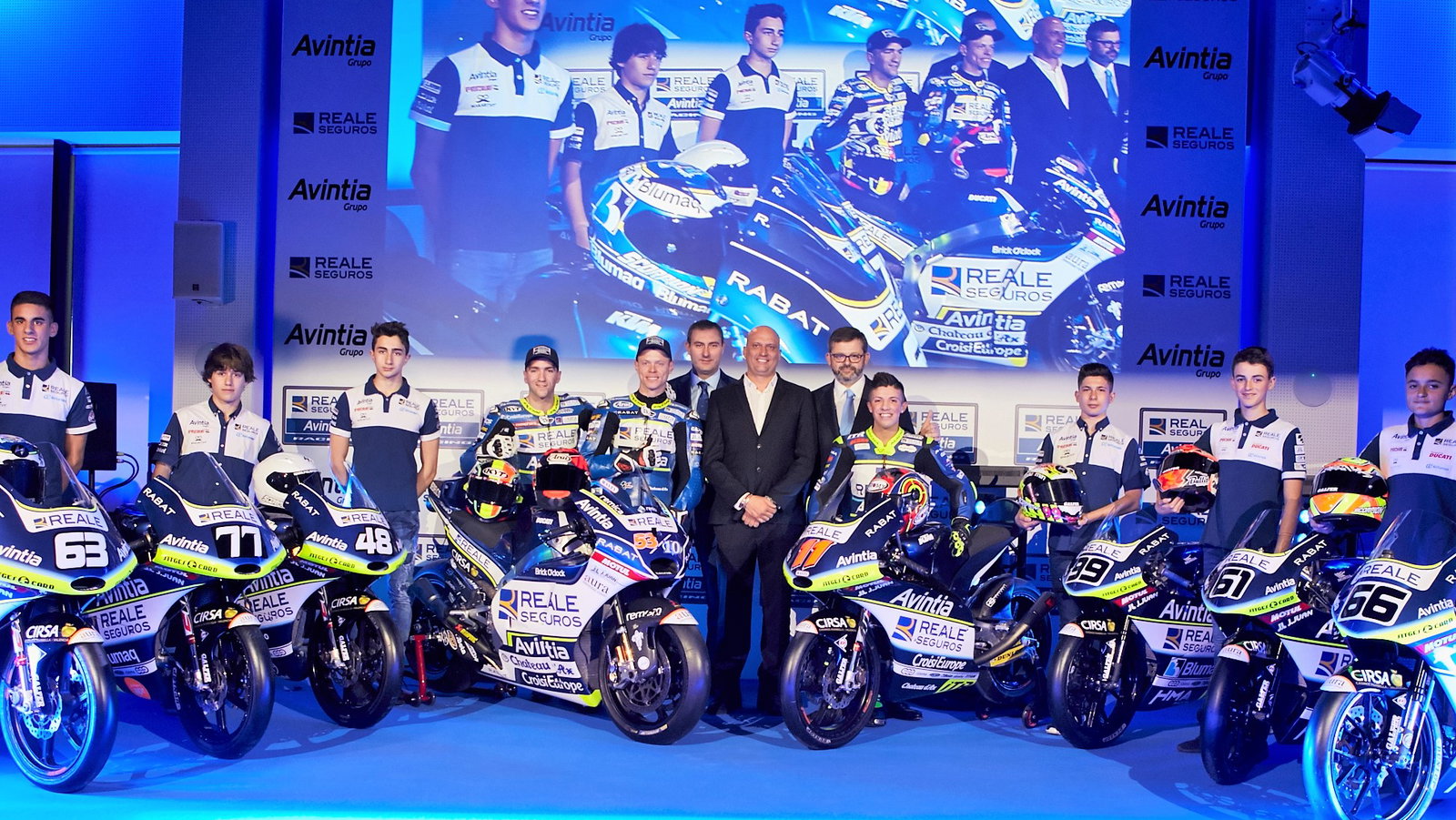 Livio Loi, who will be run by a new Reale Avintia Academy team in Moto3, plus Avintia's CEV and European Talent Cup riders were also present for the launch.